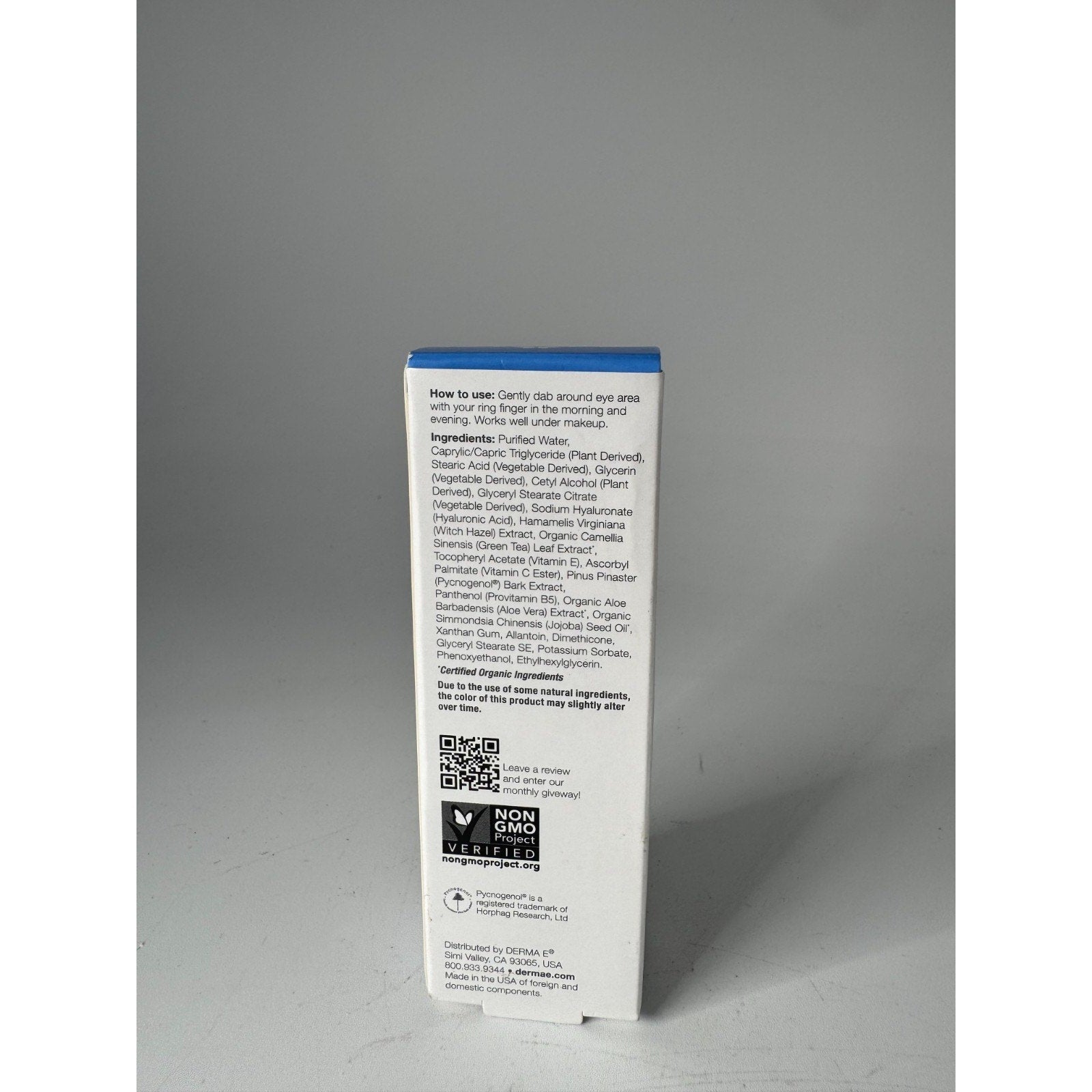 Derma E Green Tea Hyaluronic Acid Hydrating Eye Cream Reduces Puffiness 1/2 Oz