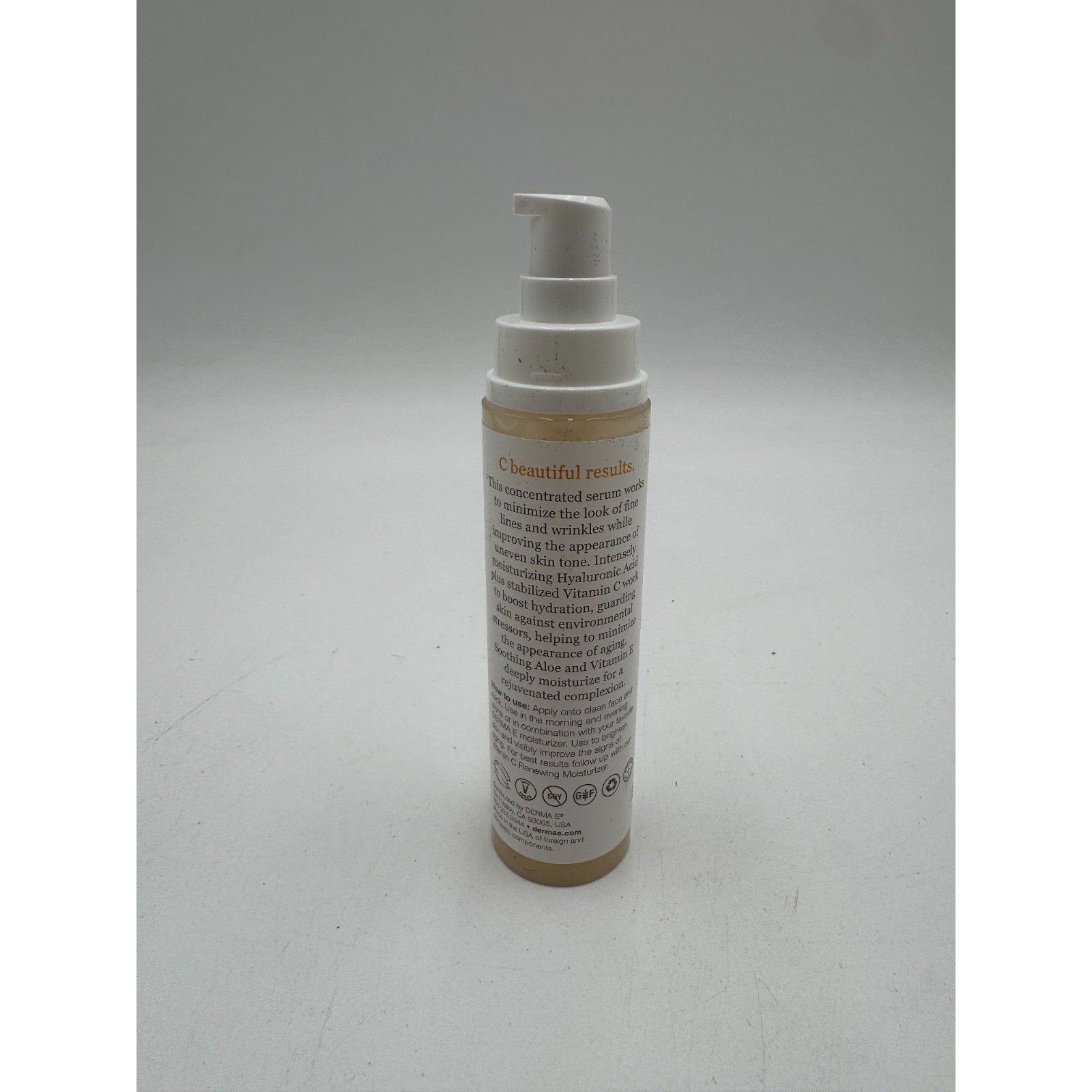 Derma E Vitamin C Concentrated Serum Hyaluronic Acid Hydrating Radiant Skin 2 Oz