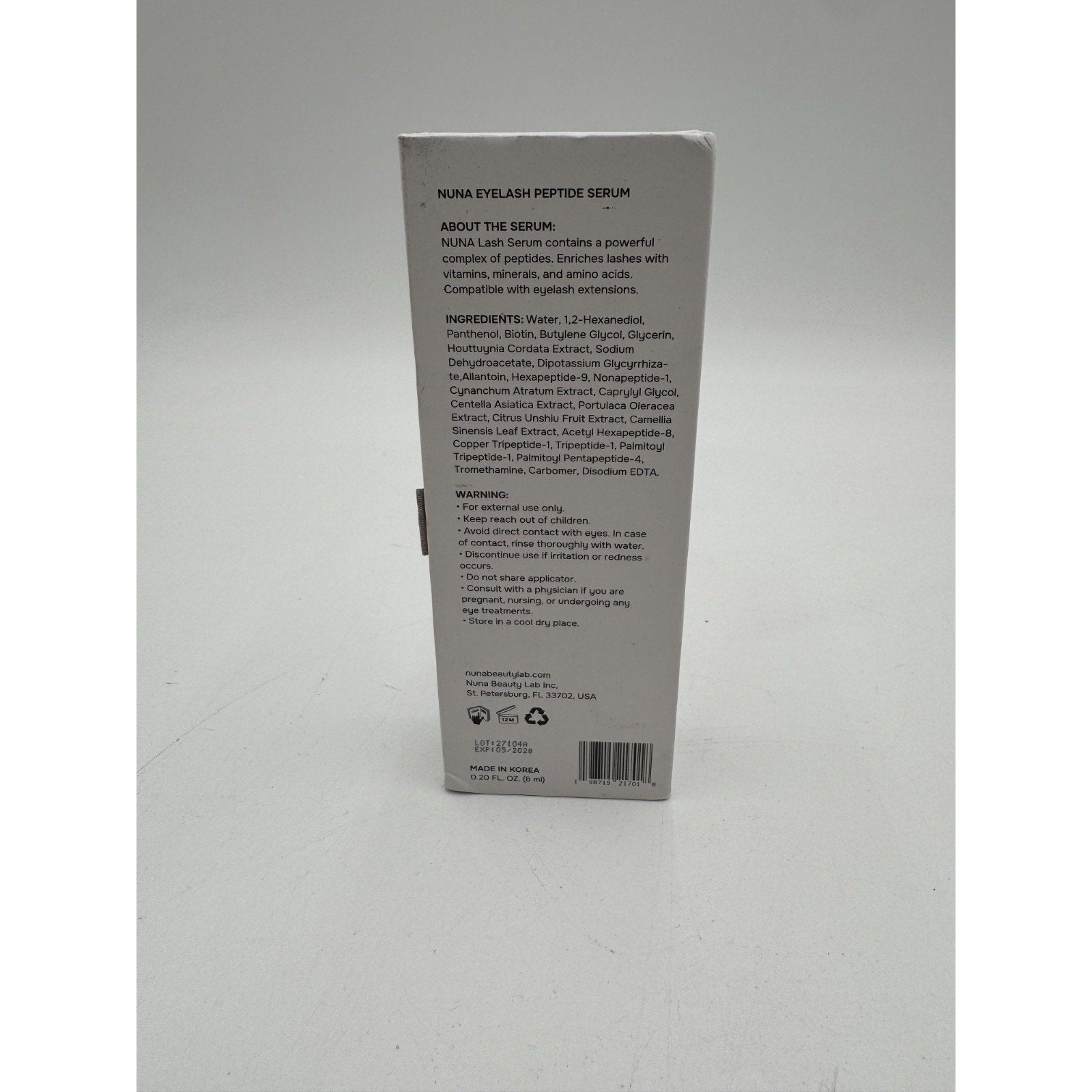 Nuna Eye Lash and Eyebrow Growth Enhancing Multi Peptide Serum Travel Size 6ml.