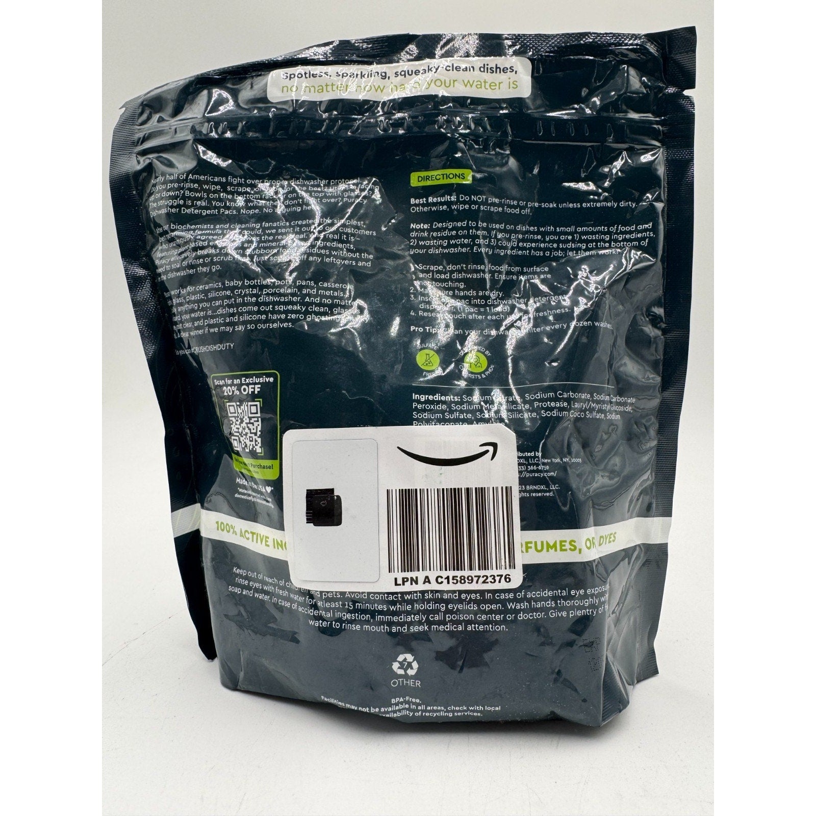 Puracy Free & Clear Plant-Based Dishwasher Detergent Packs 24.6 Oz (50 Count).